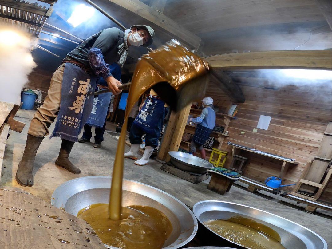 情熱を注いで伝統の黒糖を作る幸せな時間。